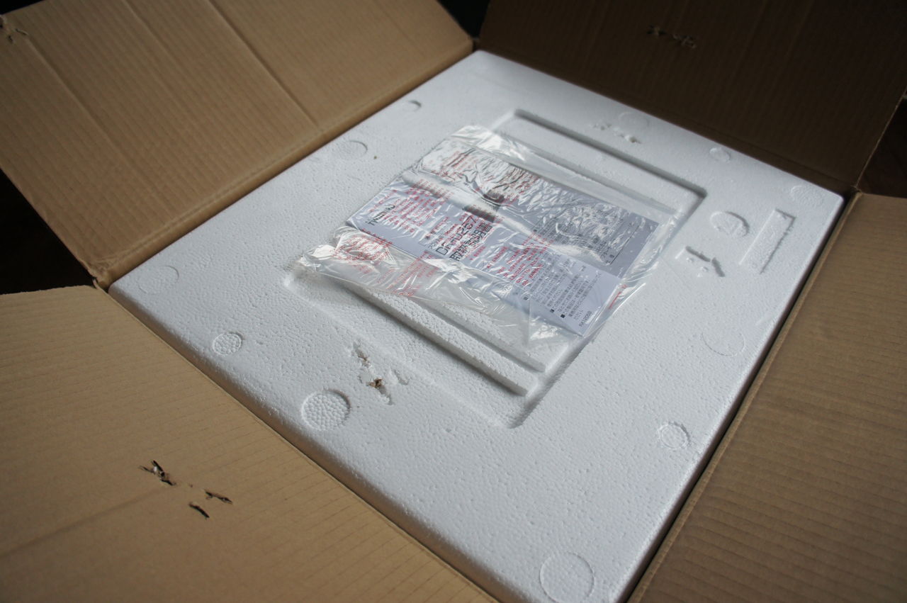 下側も発泡スチロールで梱包されていたので、どうやって取り出していいのか分からず悪戦苦闘。最終的にひっくり返したら取れるのか?と思いましたが、維持で上から取りました。