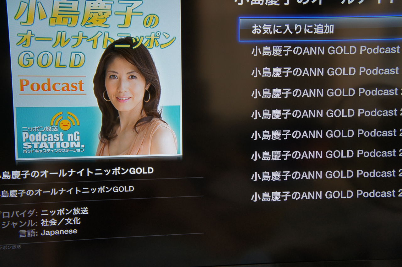 一応、Podcastにも対応してます。小島慶子のオールナイトニッポンとかライムスター宇多丸のシネマハスラーといった番組も面白いですよー。