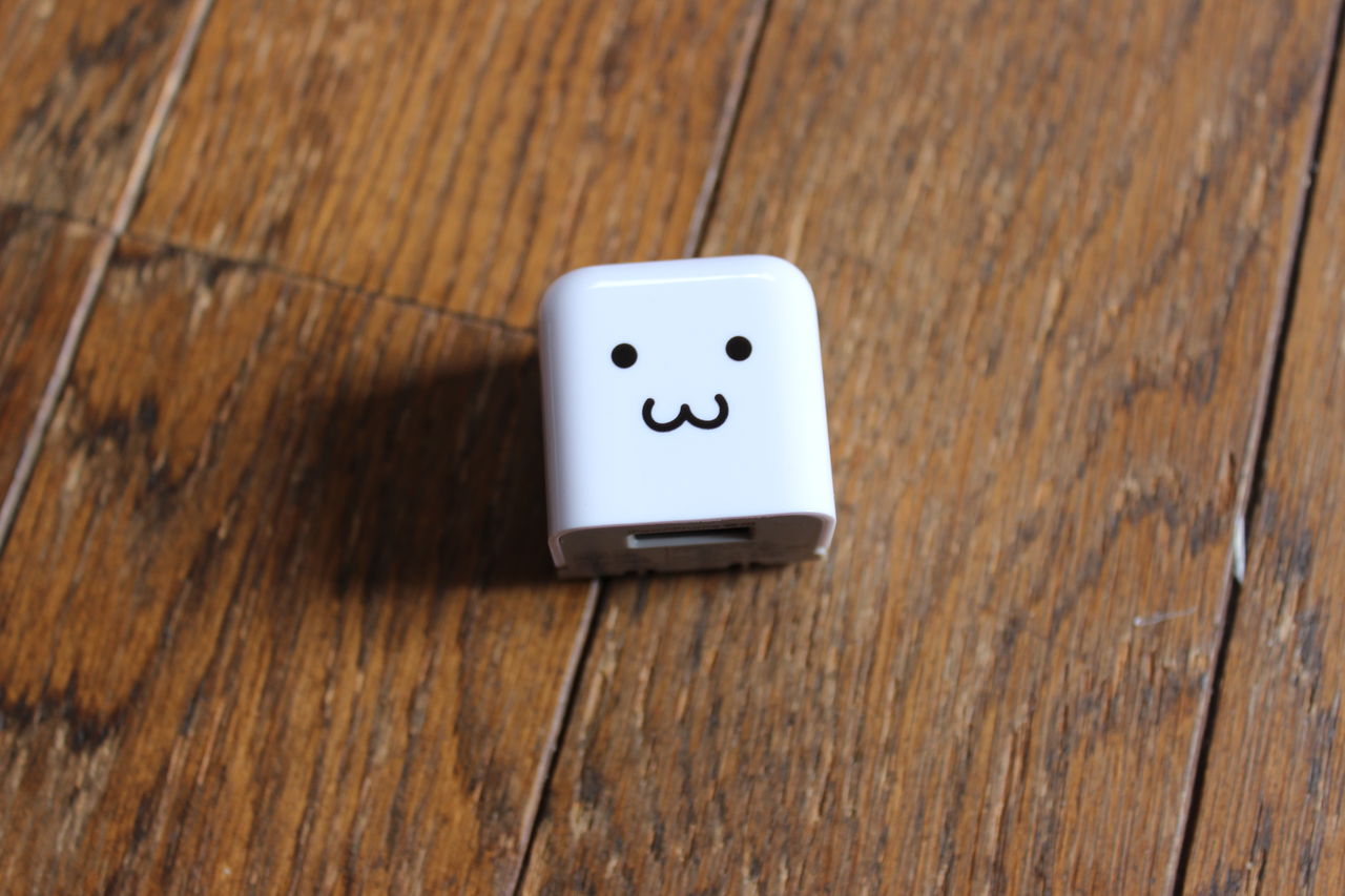 普通の充電器でもいいけど、もっとかわいい充電器が欲しいなーって思って、かわいくて実用的なiPhone用の充電を買いました。今まで、PLANEX の「充電万能」というPSPとかDSにも使える充電器を使ってたんですが、機能的には優れているもの、楽しくないのです。