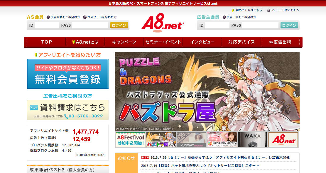 ●アフィリエイトの王道 A8.net