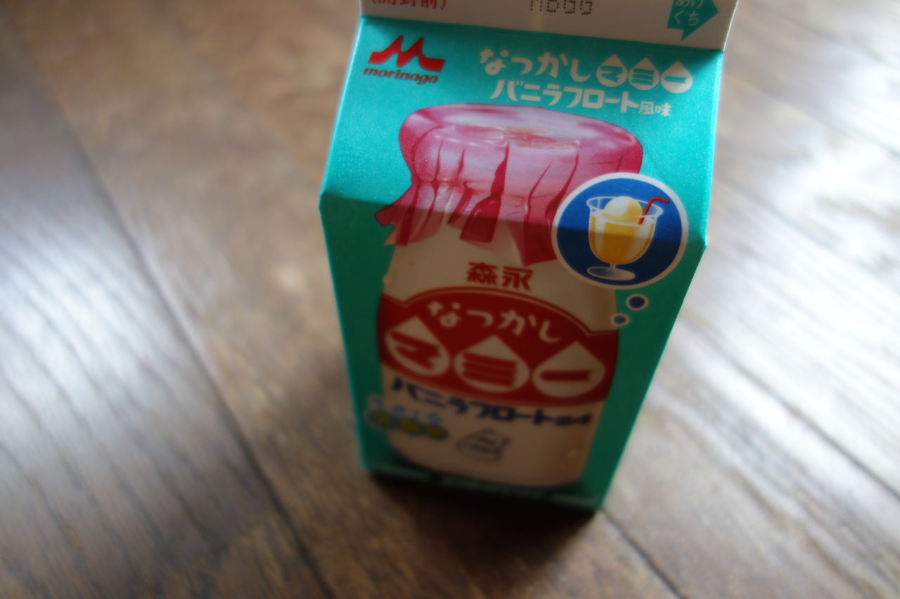 マニー自体の味を説明すると、乳酸菌飲料みたいな味です。それにバニラの味を加えて、懐かしくしたような感じ。フロートと書いてありますが、コーラにソフトクリームが乗ってて、それをコーラと混ぜた味。そのバニラ版みたいな味がします。何かパンやお菓子と一緒にといった感じではなく、それ自体で満足させてくれる味です。飲んだ後で「懐かしいー」という余韻が残ります。