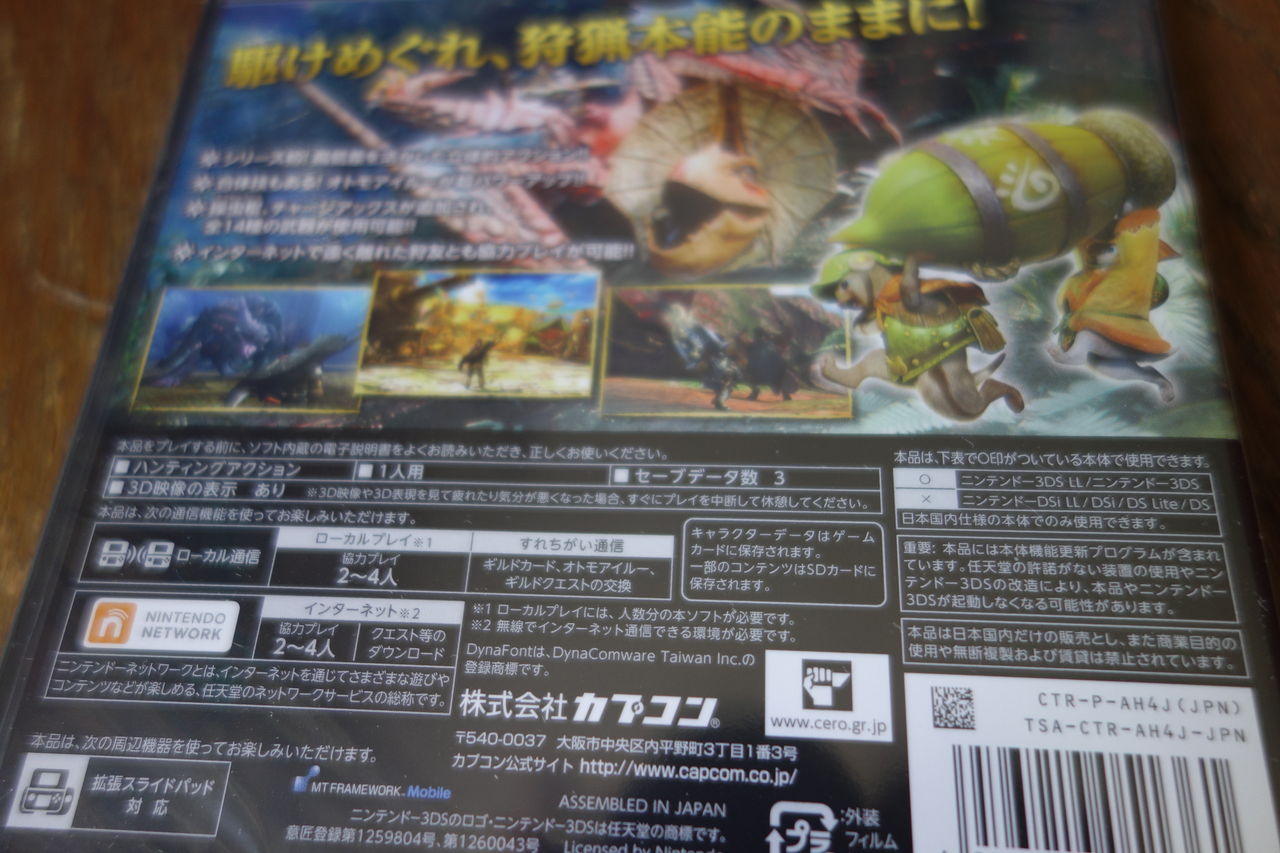 裏に色々と書かれています。説明によると、武器か増えたりダウンロード経由でクエストの追加などができるようになったそうです。