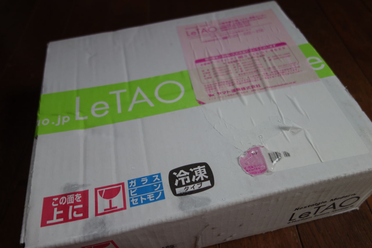 こんな箱で届きます。商品の価格の中にクール宅急便の送料も込みなのが嬉しいです。カチンコチンになって届きます。冷蔵庫で5〜8時間ほど解凍すると食べごろだそうです。