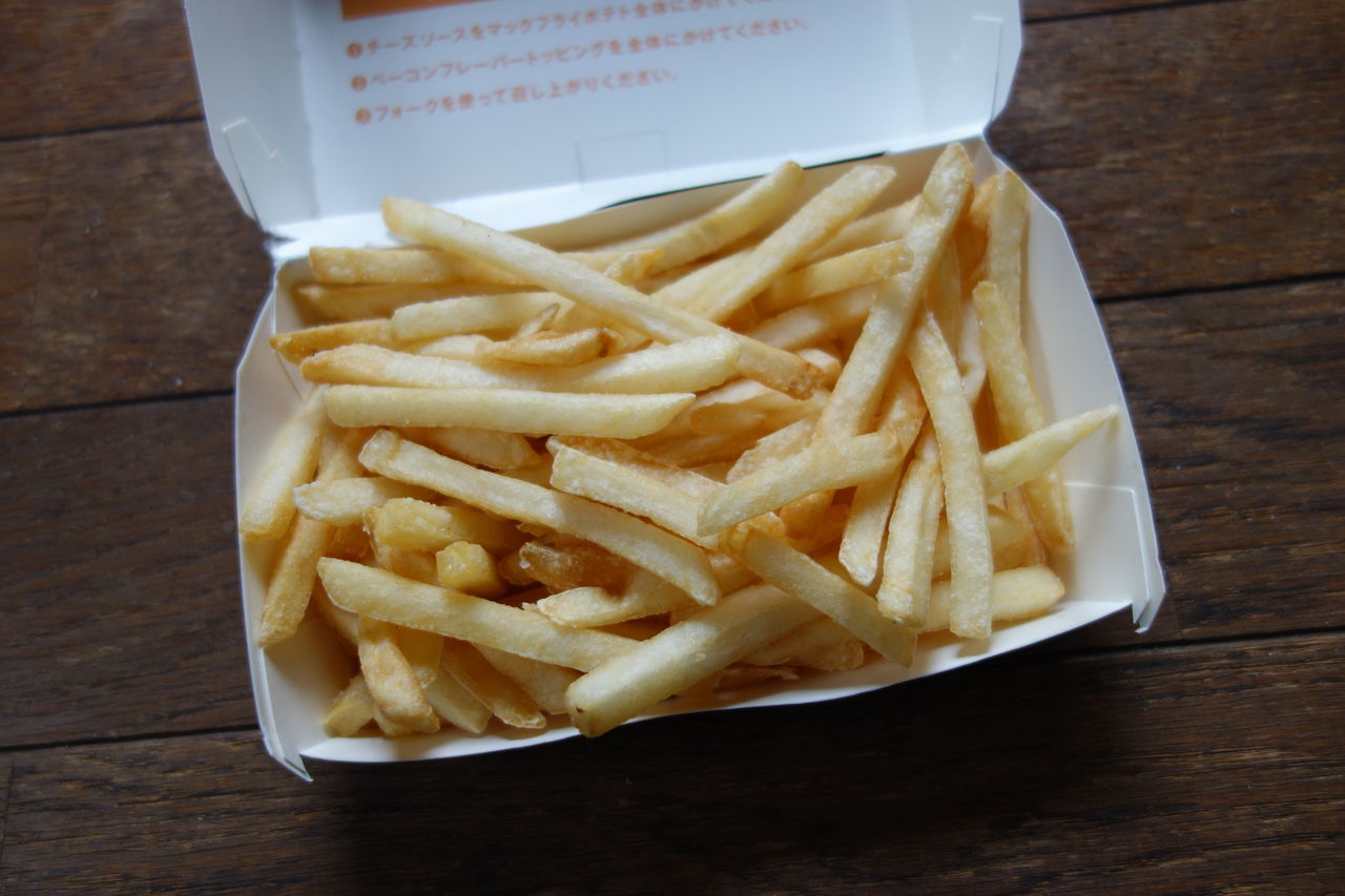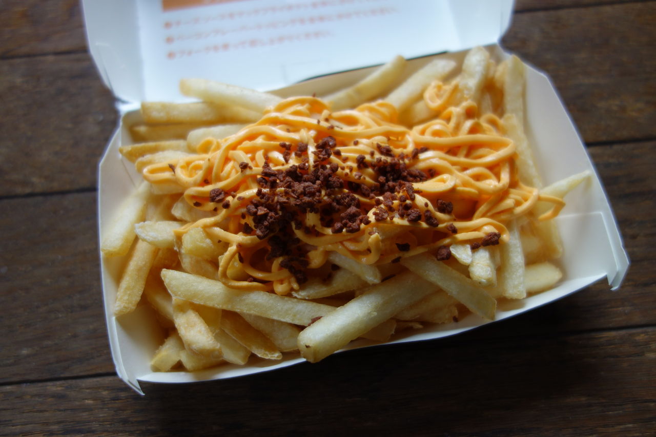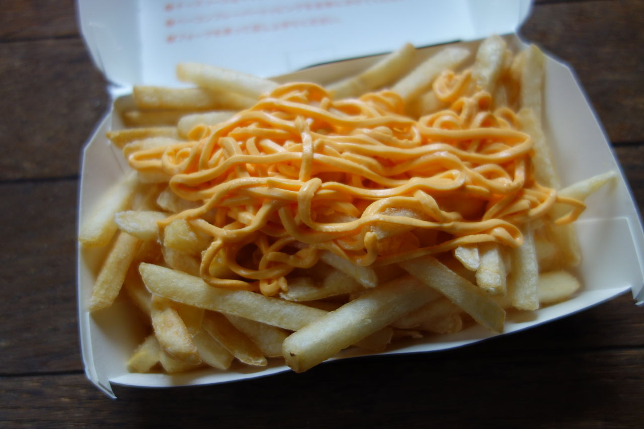 ただ、ポテトにチーズを付けただけで、ポテトMの250円にチーズを付けただけで、100円もアップするなんて高すぎです。チーズ100円かよっていう話です。もしかしたらレンジでチンすれば美味いのかもしれませんが、がっかり感は否めませんね。これが絶品という人の味覚をボクは疑います。まぁこれが好きでお金がある人は食べればいいと思いますが、これだったら、100円足さずに、普通のポテトの方を選んだ方がいいです。