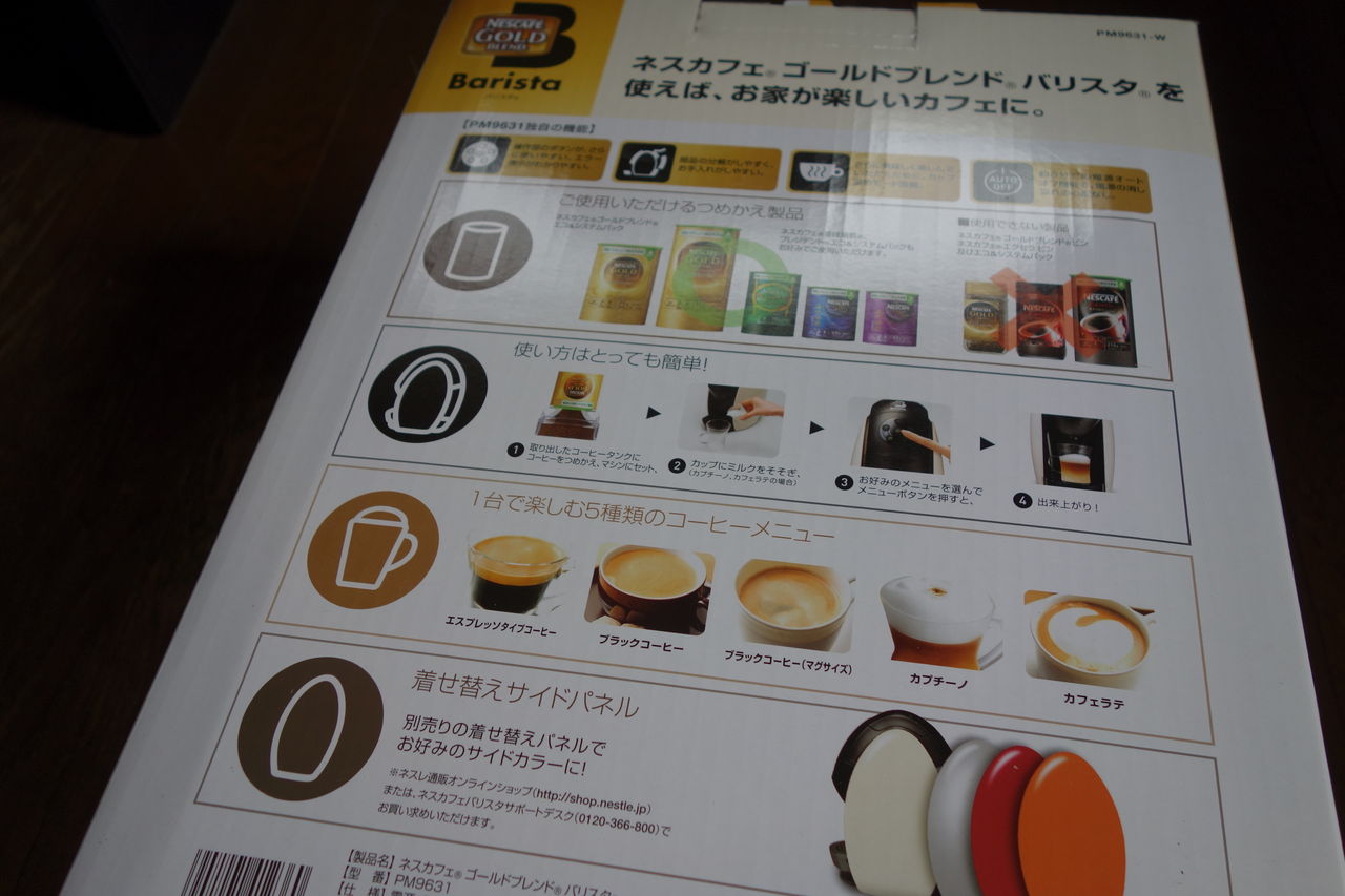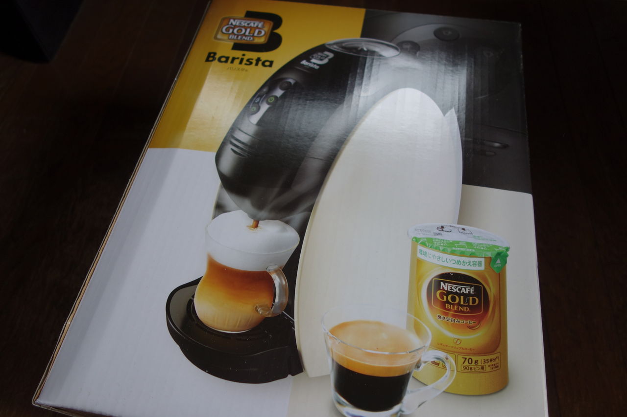 ずっと前から欲しかったんですが、ついに買いました。この製品を簡単に説明すれば、本格的なコーヒーがボタン1つで出てくるマシンです。やる事は水を入れてボタンを押すだけです。インスタントコーヒーを使っているんですが、それがインスタントとは思えないほど美味しいのです。詳しい仕組みは分かりませんが、「エスプレッソ」「カフェラッテ」「カプチーノ」など様々なメニューを出す事が可能です。