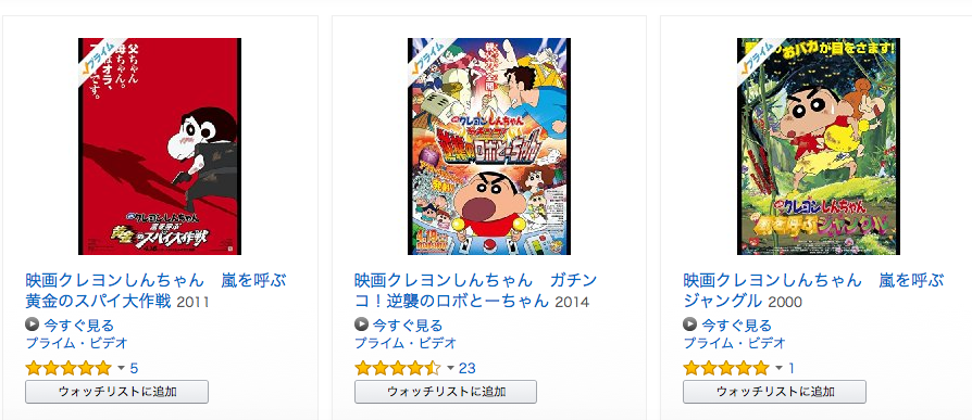 最近では、007の全23作品を独占配信しましたが、他にも「劇場版ドラえもん」「劇場版クレヨンしんちゃん」が独占配信されています。改めて言いますが、Amazonプライムのおまけサービスですよ??